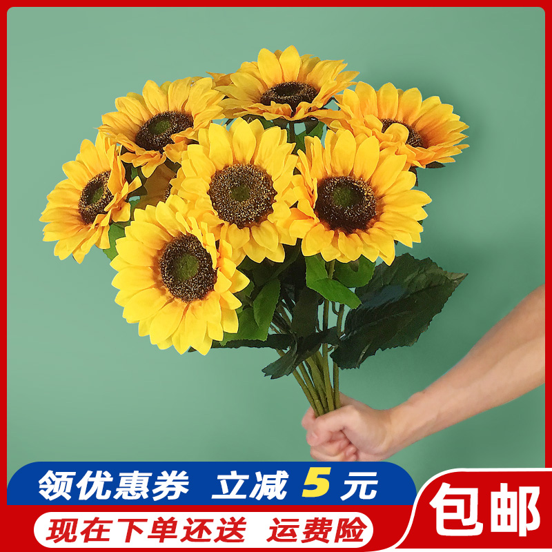 Sunflower simulation flower living room decoration plastic fake flower decoration table dried flower photo props large bouquet