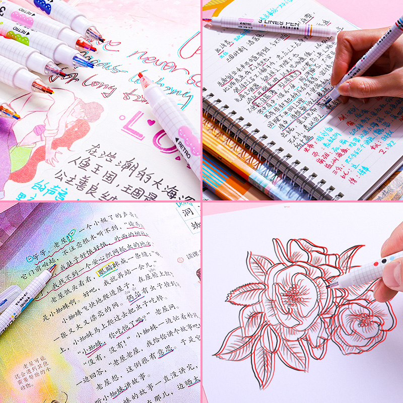 Three-dimensional three-line pen hand account pen student with two-color double-headed suit multi-color set of net red with the same paragraph creative fantasy color hand account special pen double-line contour key marker pen three-line three-color
