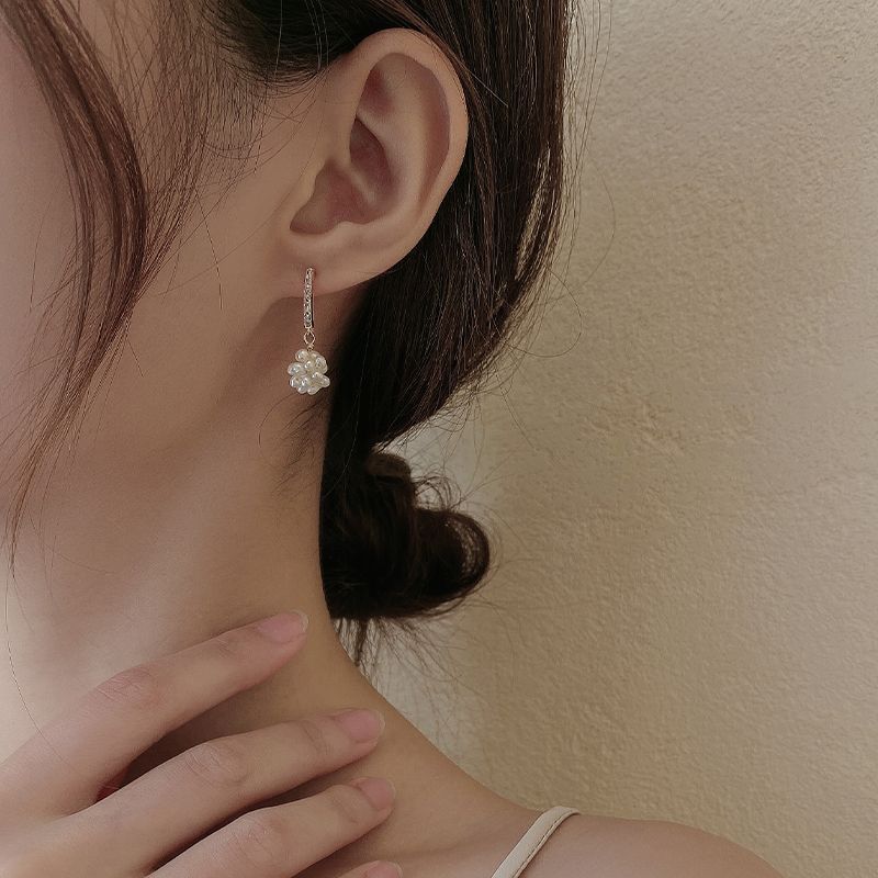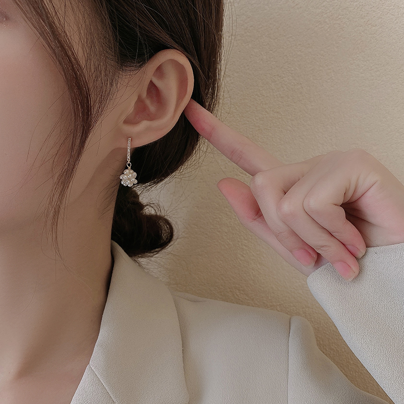 Pearl ball ear needle 925 silver needle niche design high - sensibility luxury and simple earrings temperament new tide