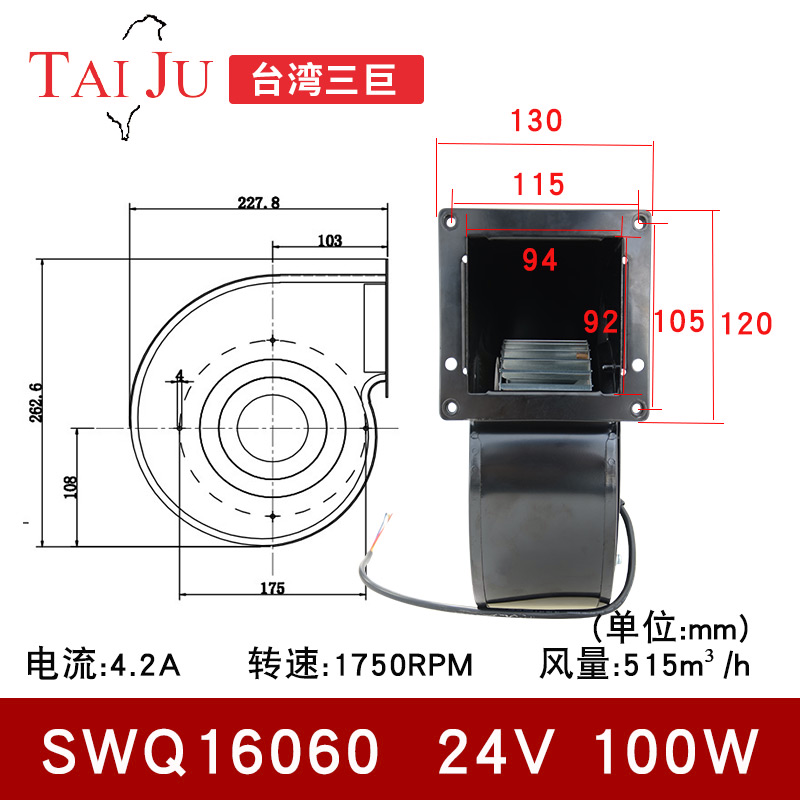 Taiwan's three giant small industrial frequency centrifugal fan 24V 48V DC blower SWQ160 62 turbo fan