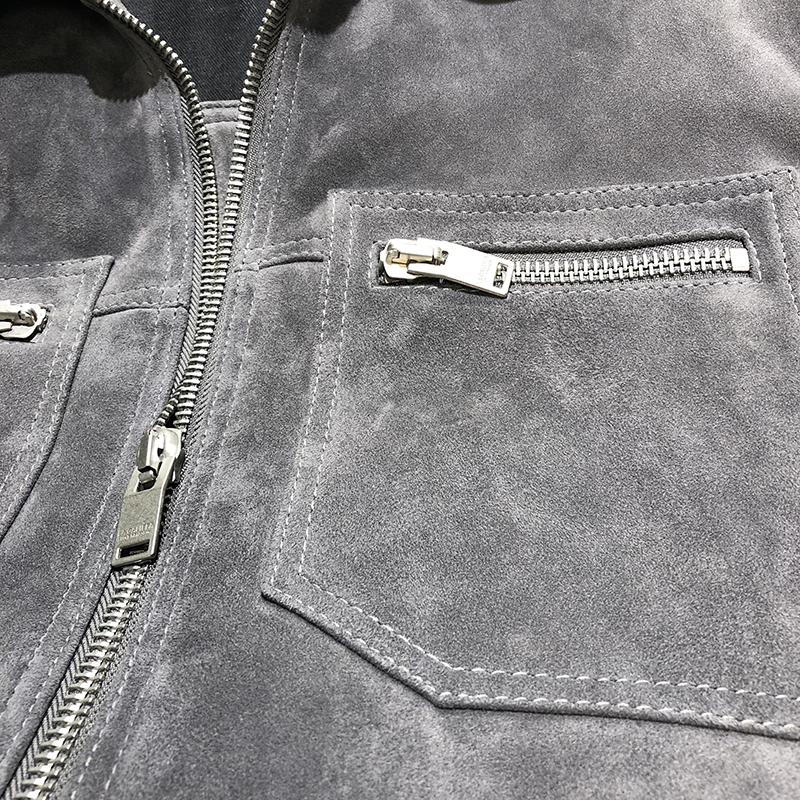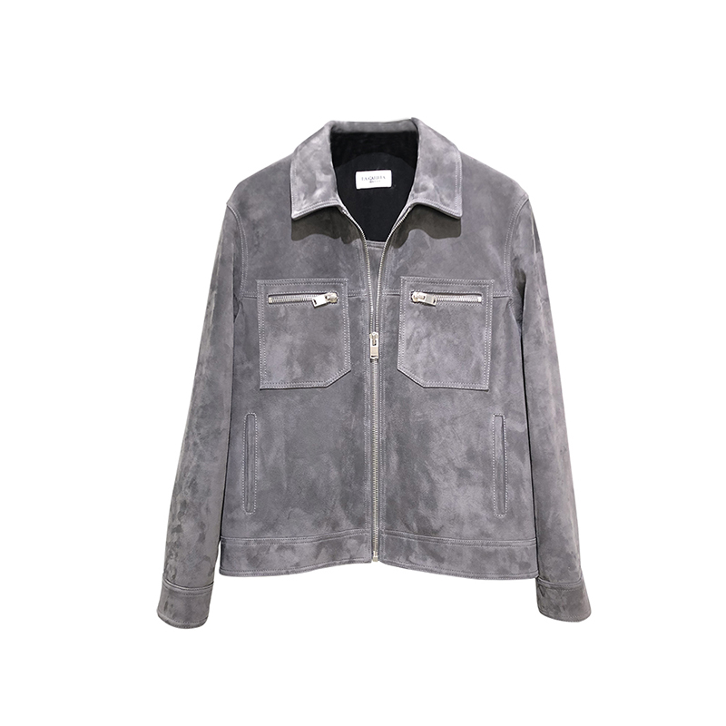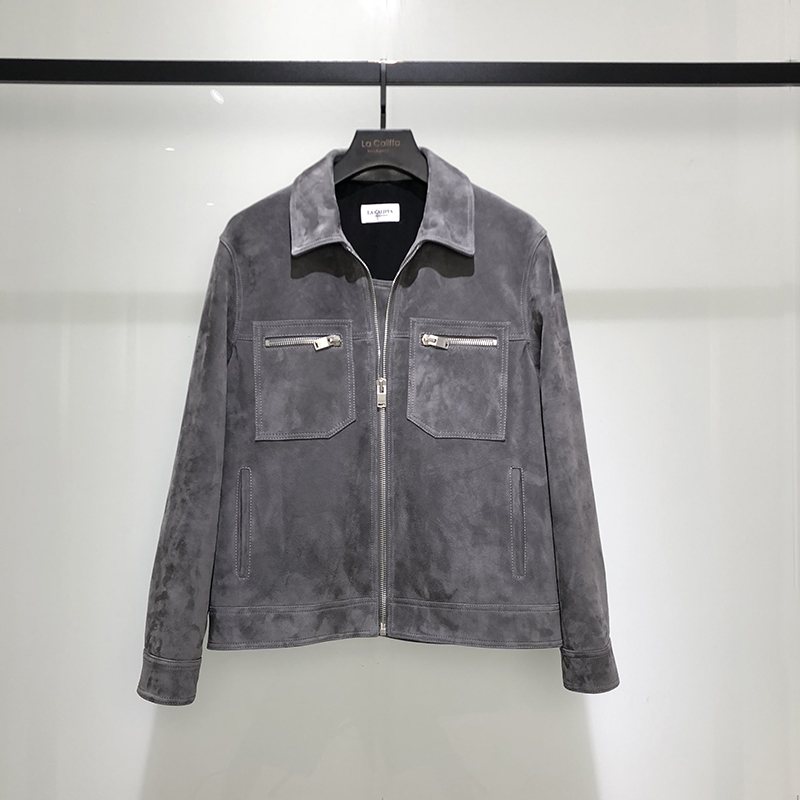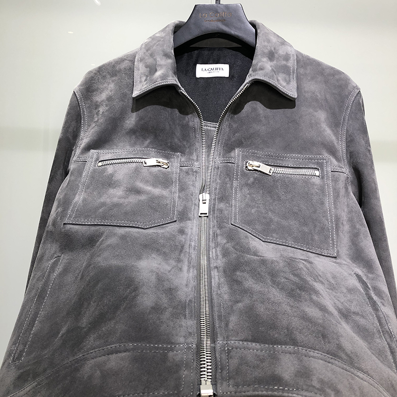 LA CALIFFA elegant haze gray French romance velvet feeling suede sheepskin lapel jacket leather jacket
