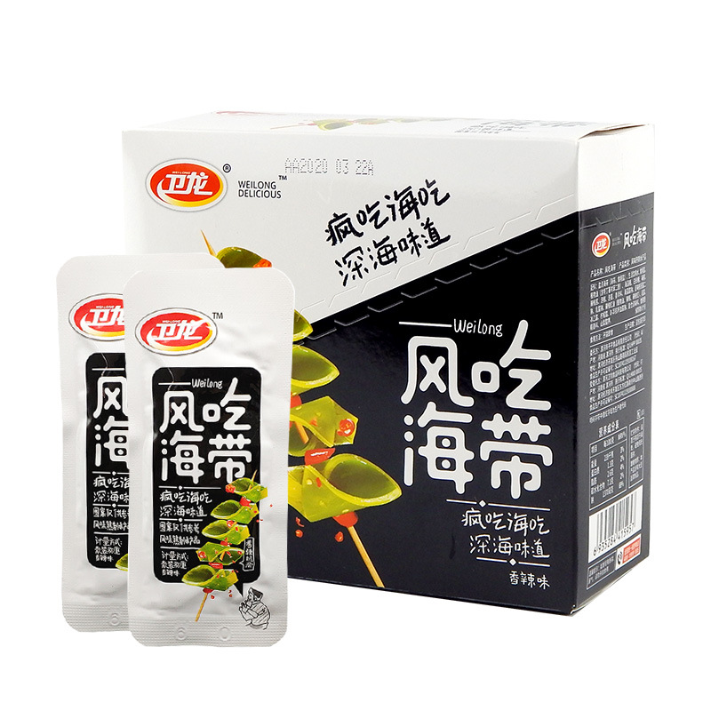 Weilong wind eat kelp boxed kelp knot instant snack small bag 20 pack spicy small snacks whole box 400g