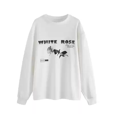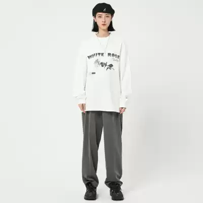(WUT official store)2020AW black and white rose cursive slogan wild thick cotton T tide loose top Xinjiang cotton