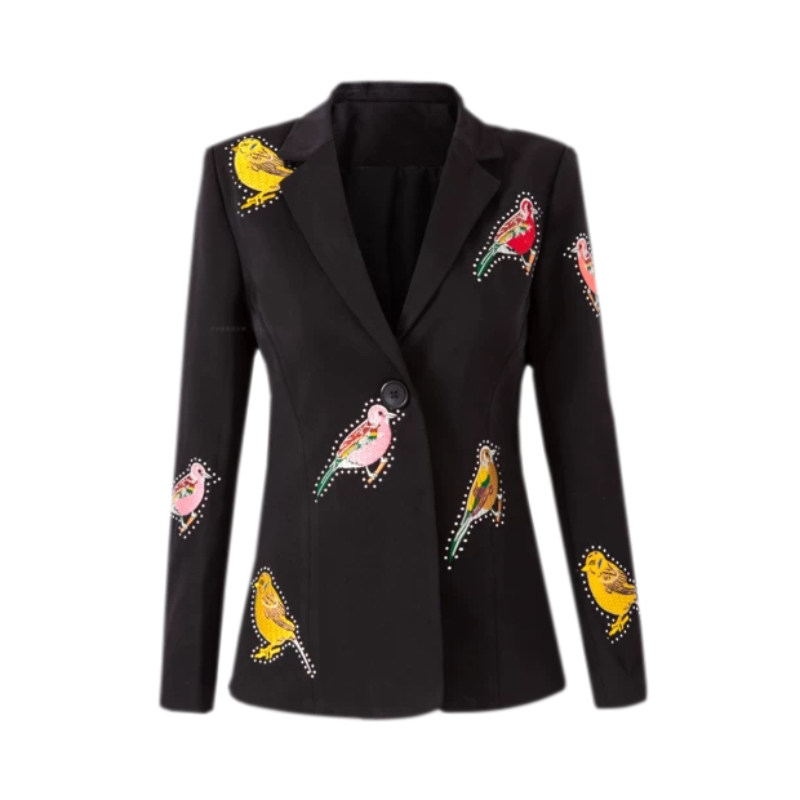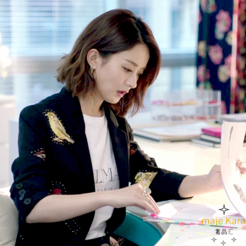 maje kara coat woman 2022 spring and autumn Korean version stars with the same embroidery little bird printed temperament small suit damp