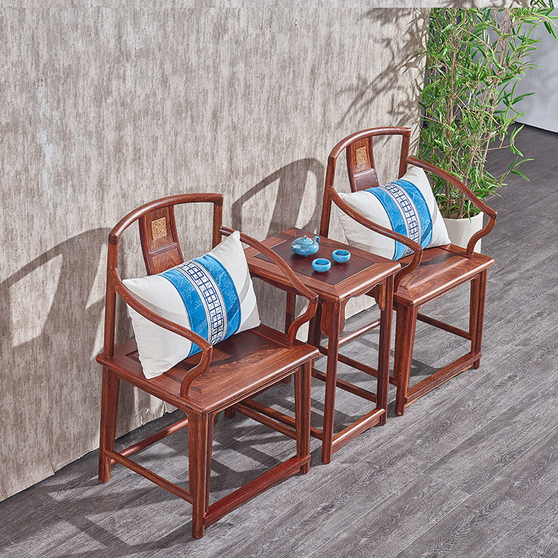 Red Wood Casual Chair Hedgehog Purple Sandalwood Chair Solid Wood Balcony Chair Three Sets Tea Table Combined Flowers Pear Wood Chinese Modern