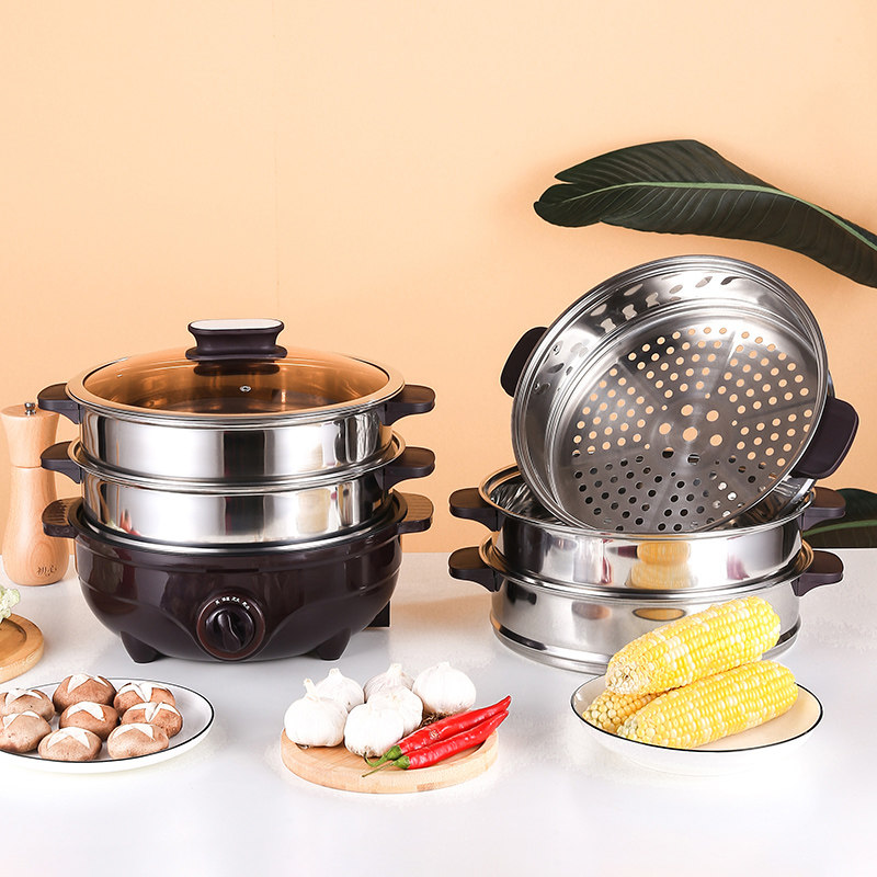 Electric Steamer Multilayer Large Capacity Multifunction Home Stainless Steel Steam Pot Steamed Stuffed Buns Steamed Fish Meat Three-Four Layers