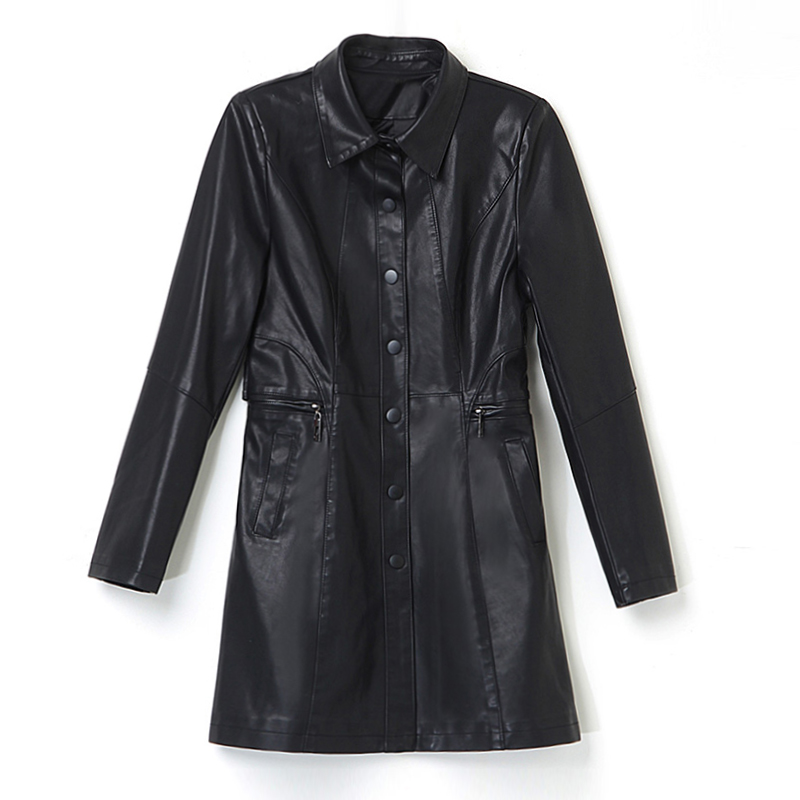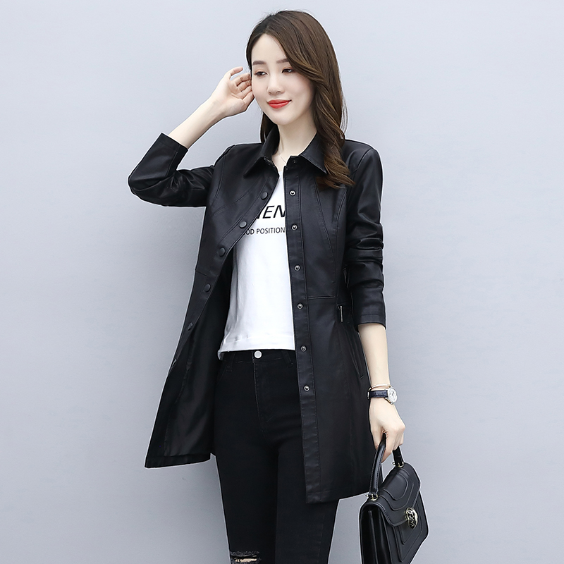 Plus velvet long PU leather women's 2021 winter new women's Korean fashion long sleeve motorcycle leather jacket coat
