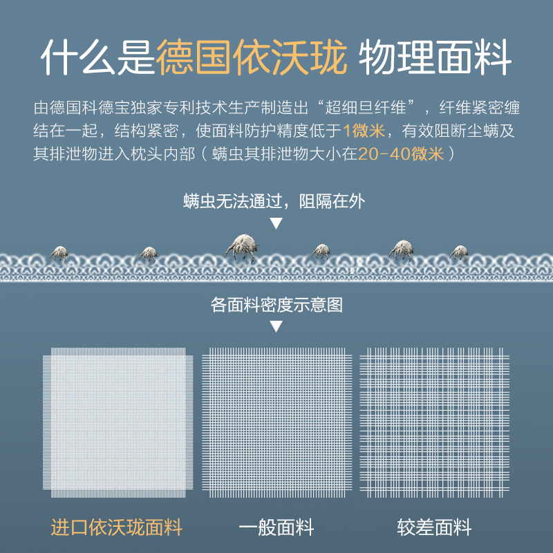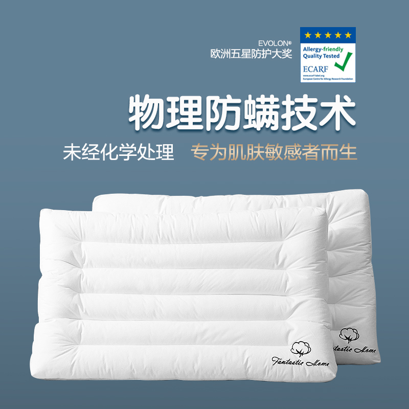 Physical anti-mite embroidery neck low pillow-kapok (single pack)