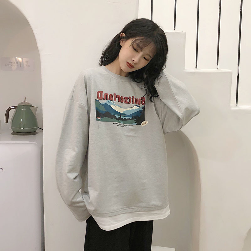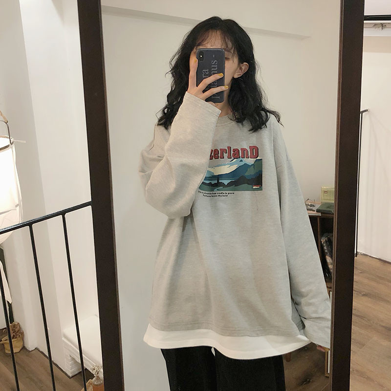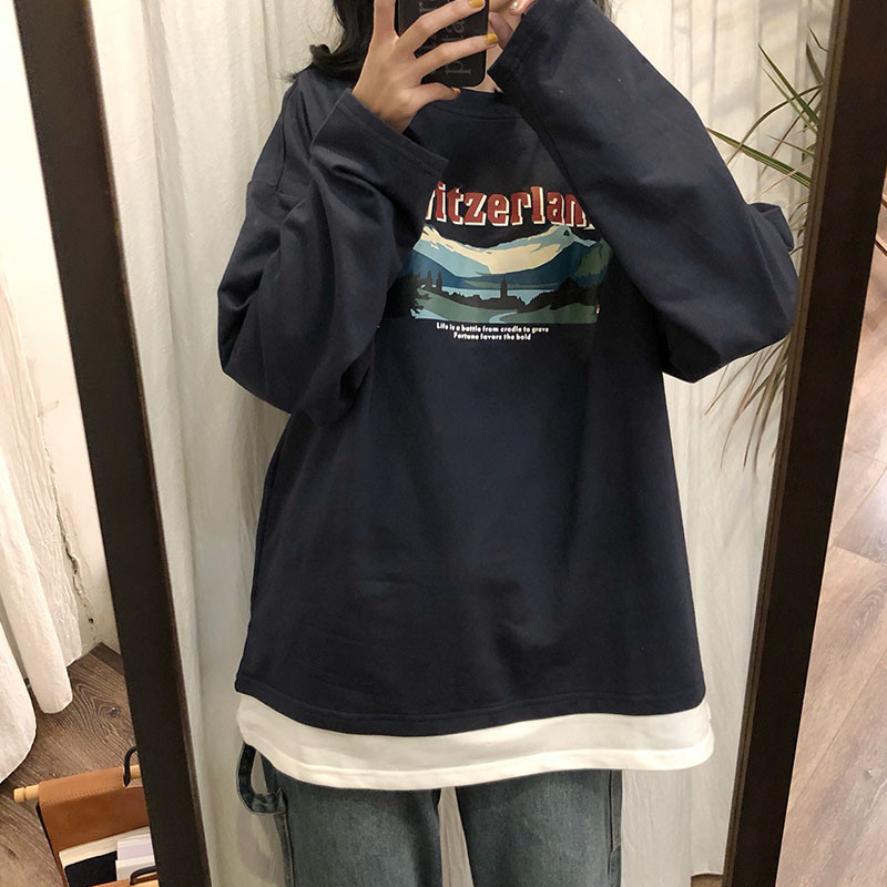 Hyperfire cec fake two long sleeves women's spring and autumn clothes Han version ancient with thin coat of coats and dinghy damp students loose clothes