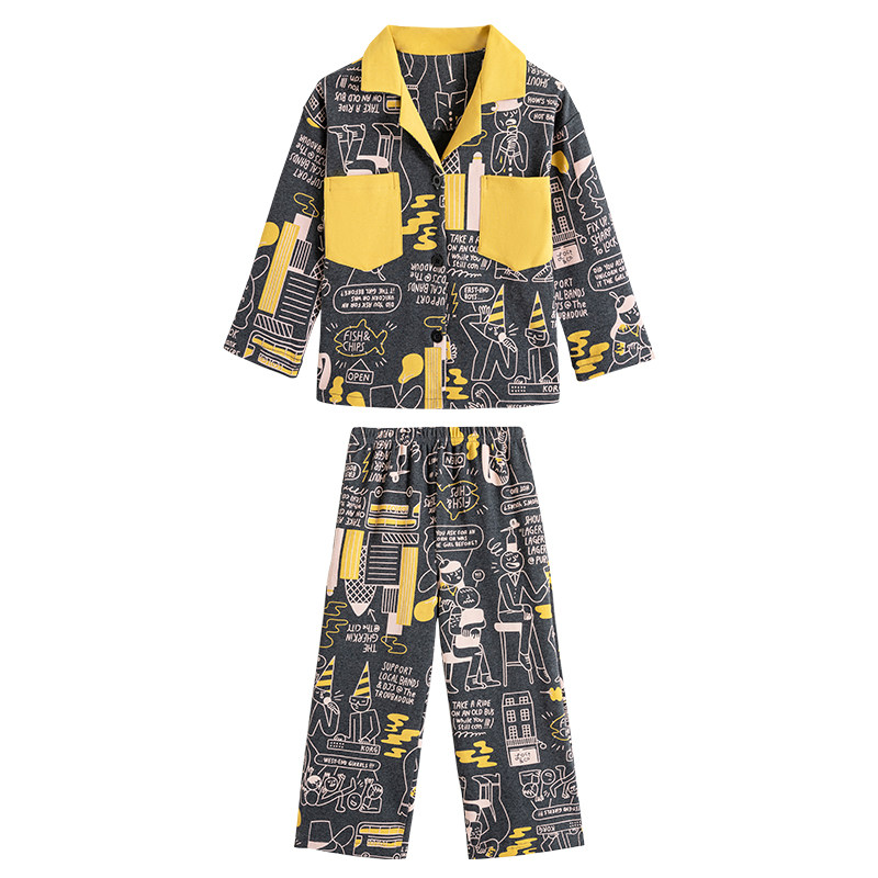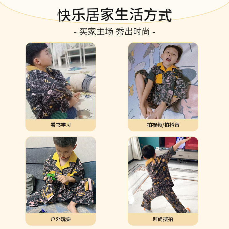 Children's pajamas boys autumn thin cotton long-sleeved suits boys middle-aged children's casual Western style baby home clothes