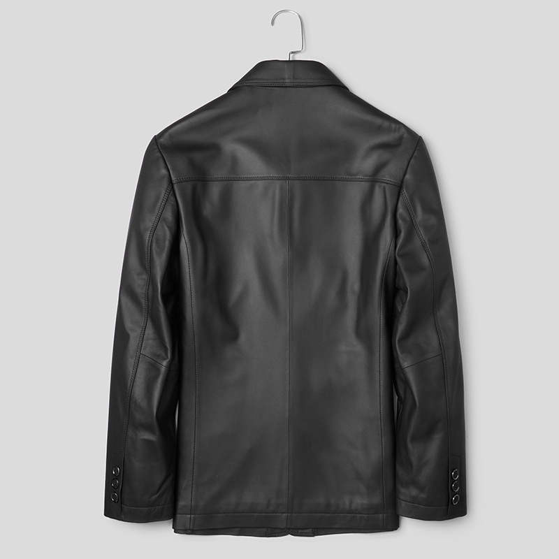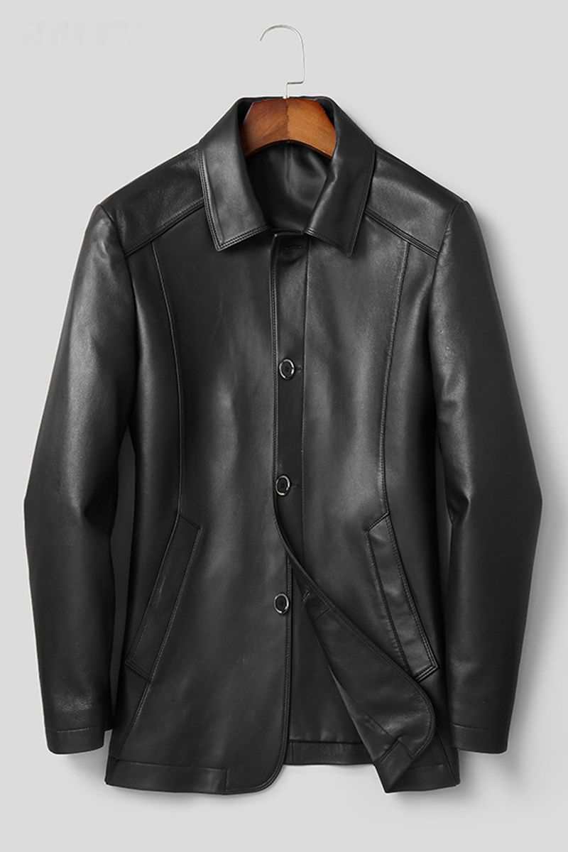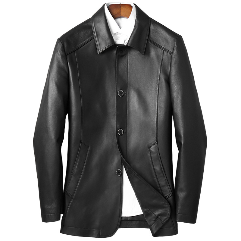 Middle aged men's large size leather clothing sheep genuine leather medium long version of the wind coat and fatter and fatter to turn over the fat guy business jacket fat