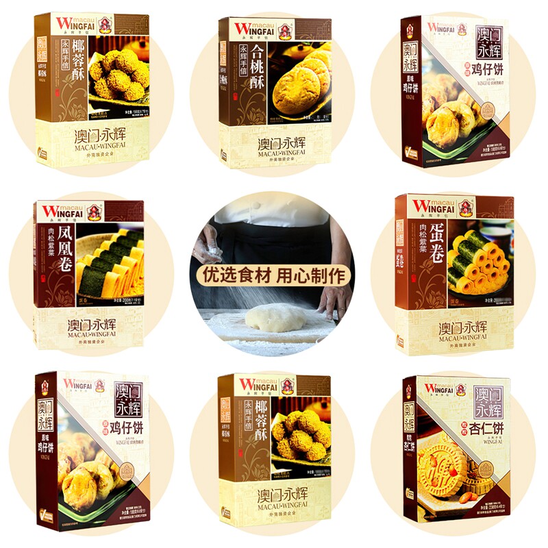 Grain Almond Cake 220 gr Mini Almond Cake 120 gr Traditional Egg Roll 200 gr Ghee Almond Strips 160 gr Coconut Phoenix Rolls 200 gr Pineapples Crisp 120 gr Peach Crisp 220 gr Chicken