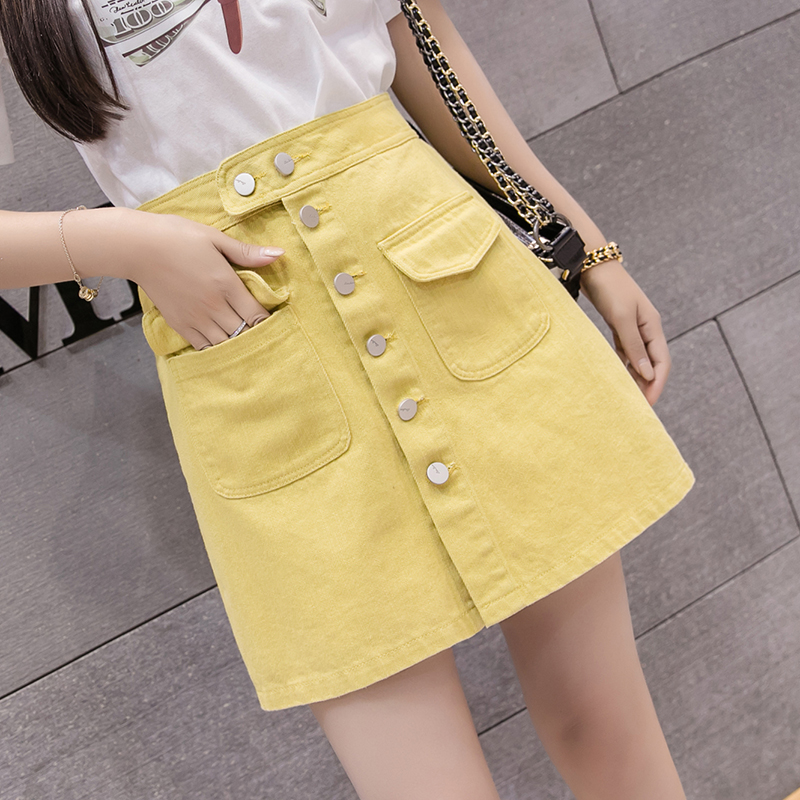 Denim skirt women's high waist single-breasted fashion 2021 summer Thin Thin a-shaped anti-light bag hip skirt
