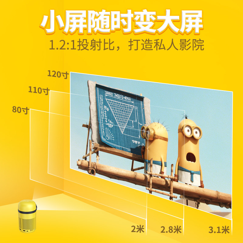 Big eye orange little yellow man H1 projector home smart micro mini student dormitory 1080p high definition portable mobile phone wireless screen OBE projector home theater cast wall to watch movies