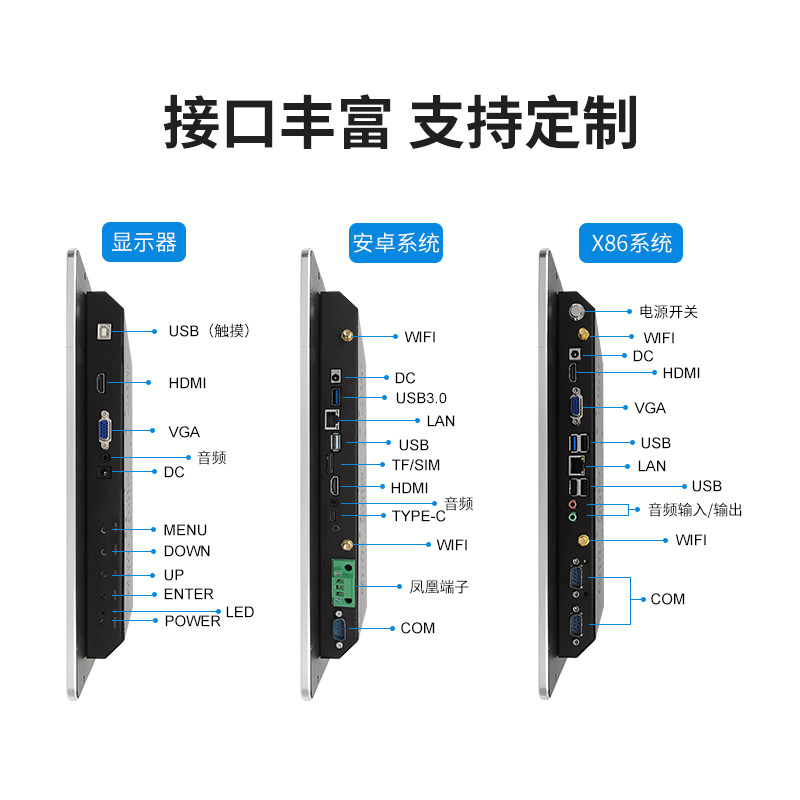 Touch monitor (without system) Android RK3288 2G 16G Android RK3399 4G 32G quad-core J1900 4G 64G Core 3