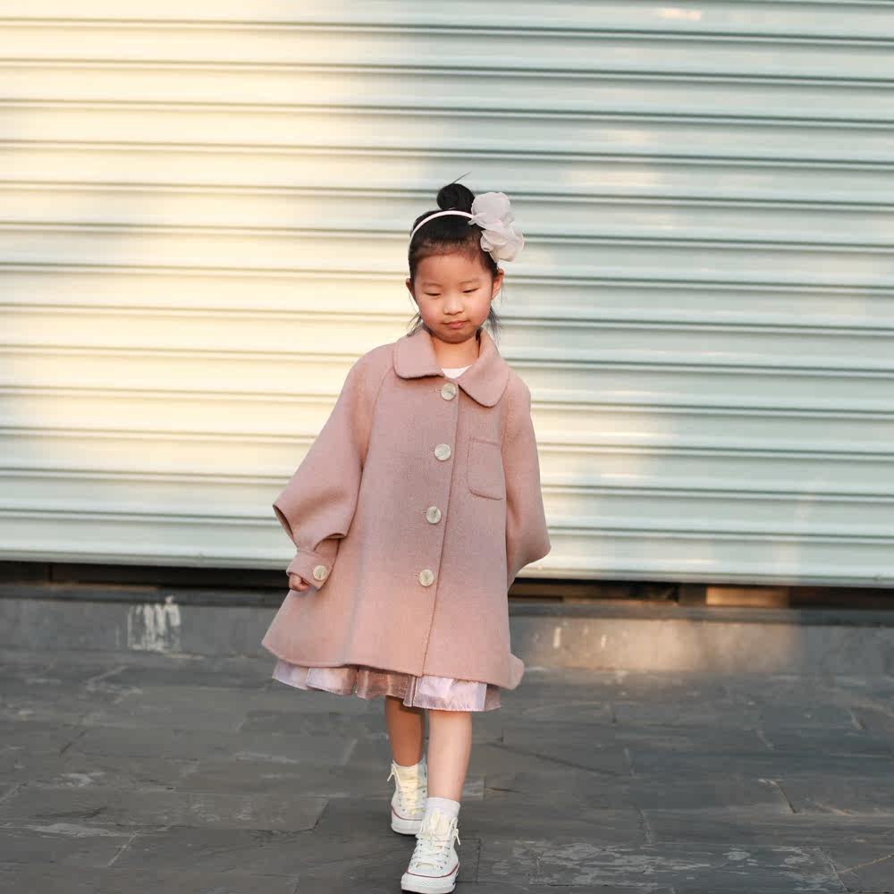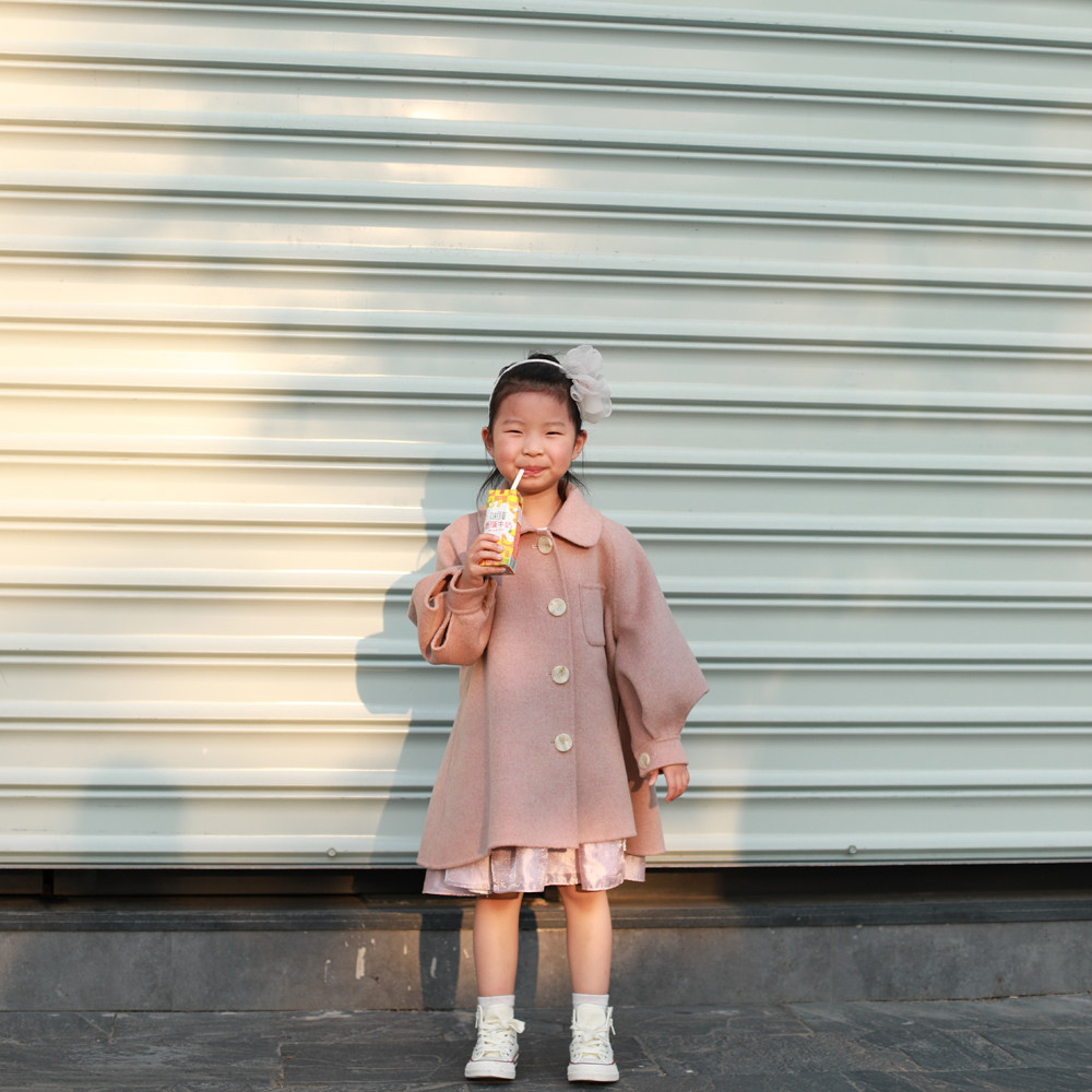 Girls' woolen coat 2021 winter dress new Korean version of the long version of the children bifacial cashmere big coat the little girl