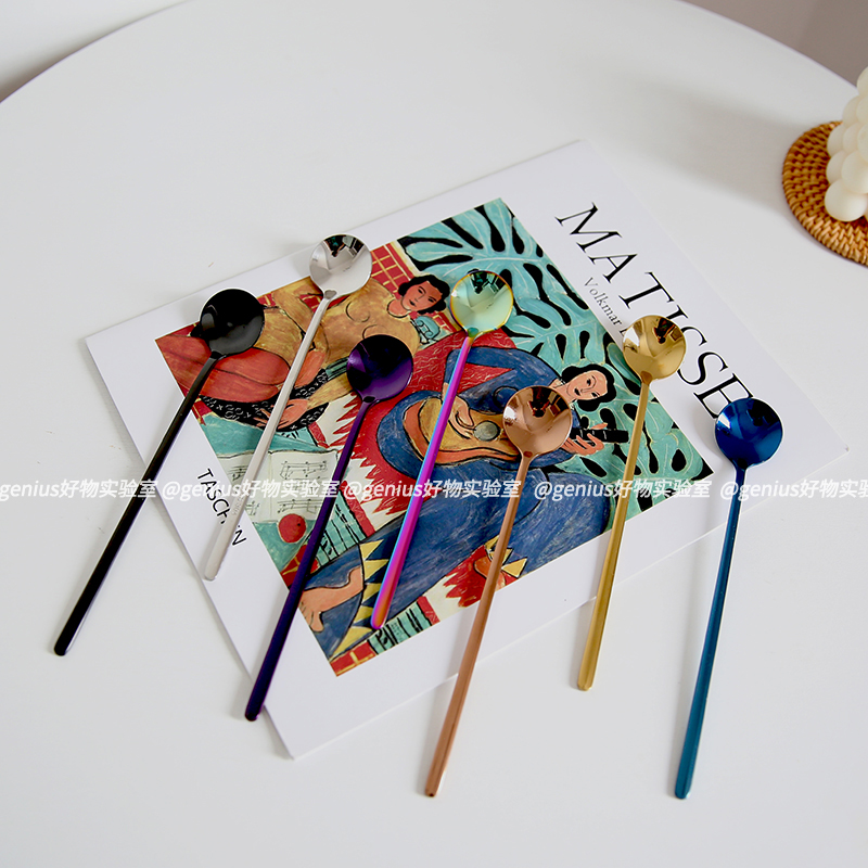 304 stainless steel ins spoon student Korean Korean household round head long handle net red spoon cup spoon