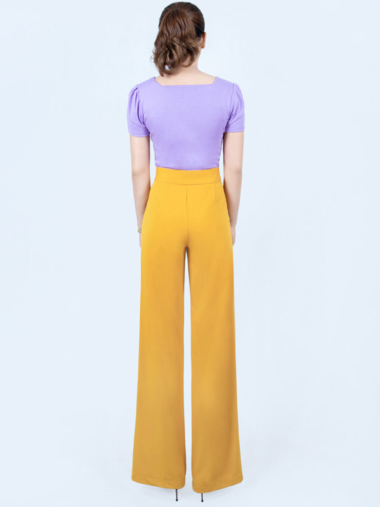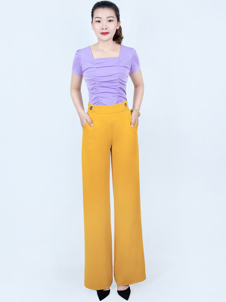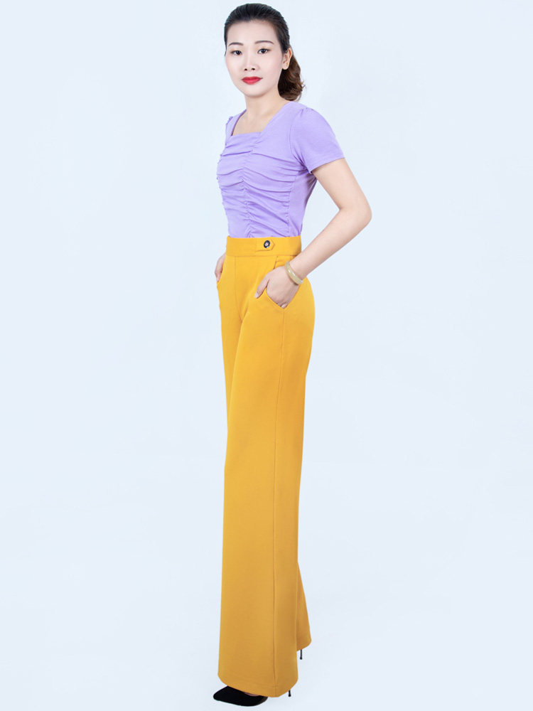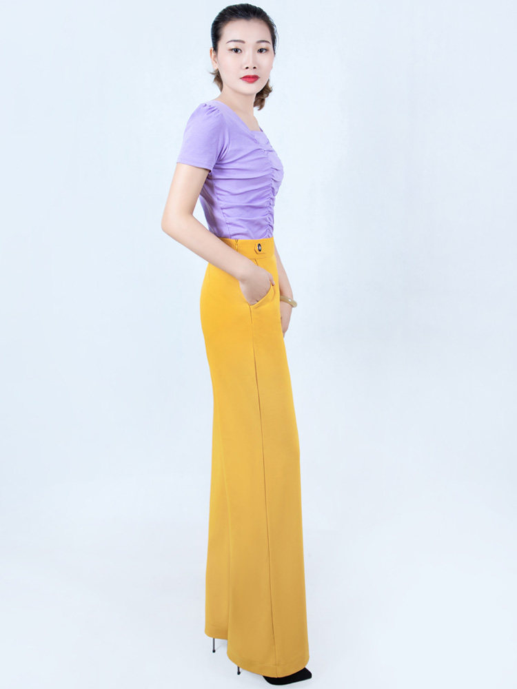 WK41 yellow small pick up two-grain buttoned pocket pants