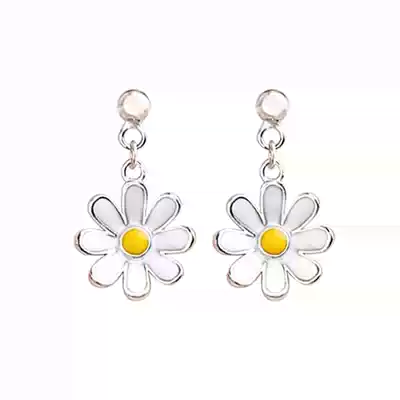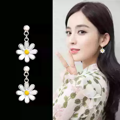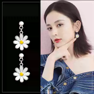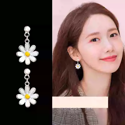 Japan and South Korea Joker small Daisy sterling silver earrings female 2021 New Tide fairy cold wind Net Red personality simple earrings