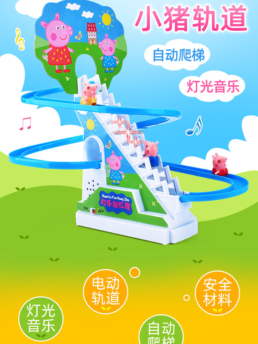 Peppa Pig George climbs the stairs track toy children's slides for children over 3 years old baby light music