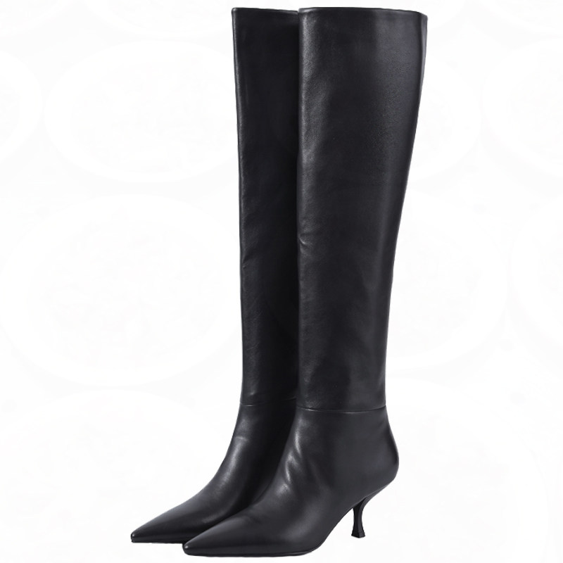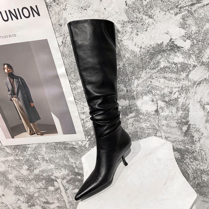 Giant and thin ~ women's boots spring and autumn single boots European style standing leather boots women's pointed toe over the knee pile boots small heel trendy