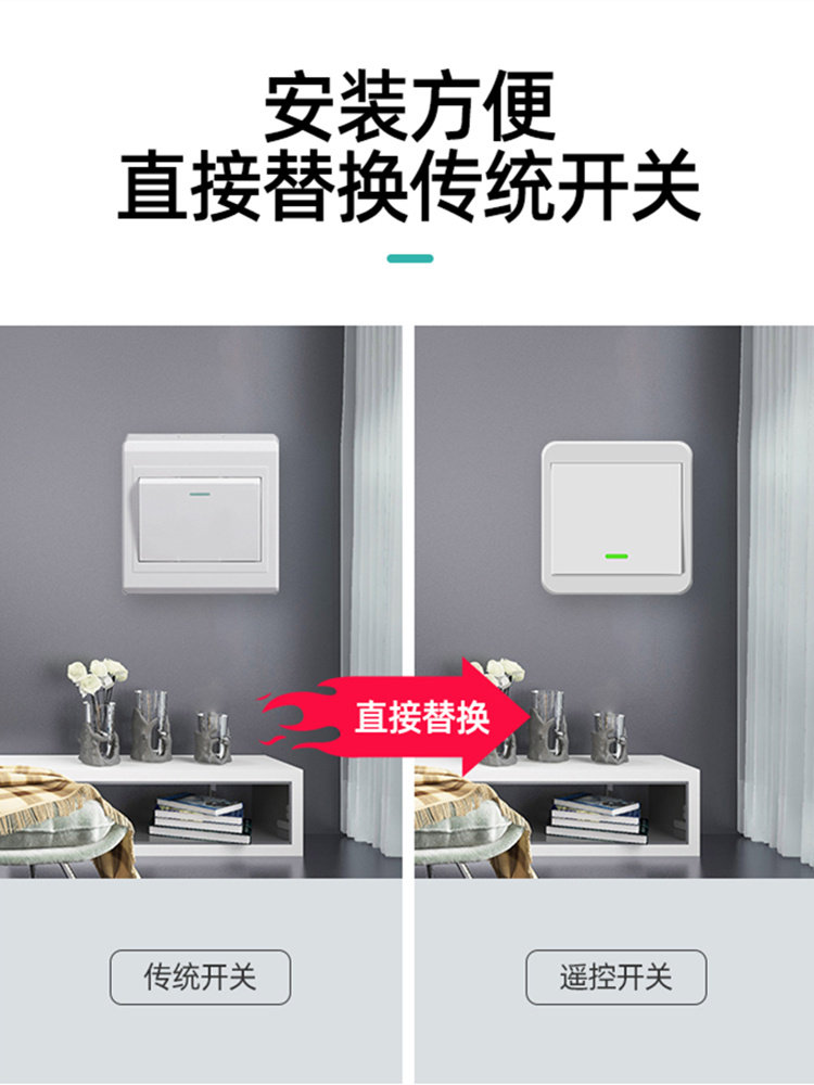 Wireless assistant single wire remote control switch lighting wiring-free panel free paste control type double cut 220v bedroom