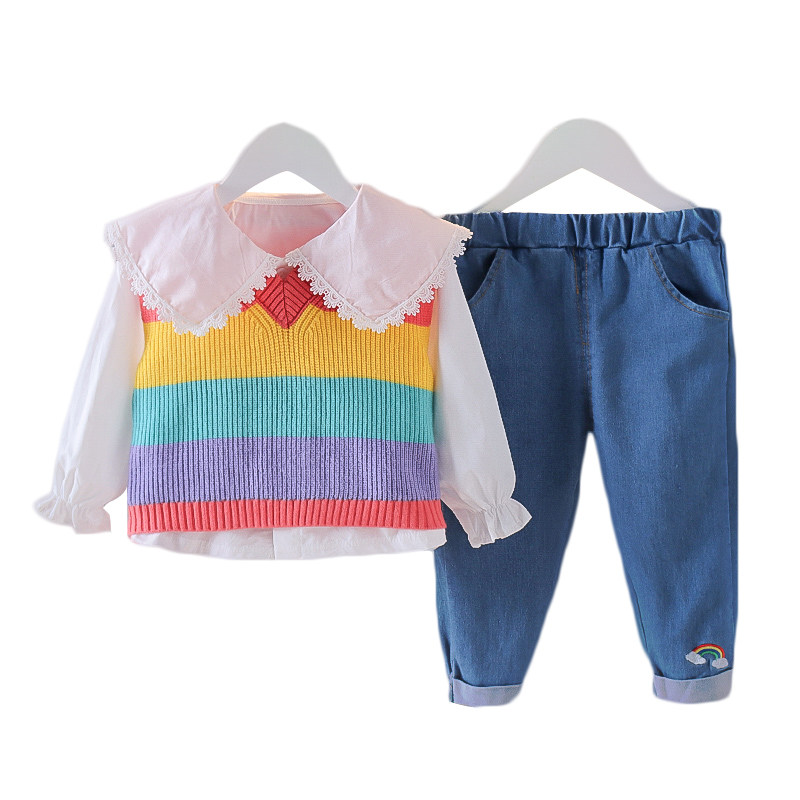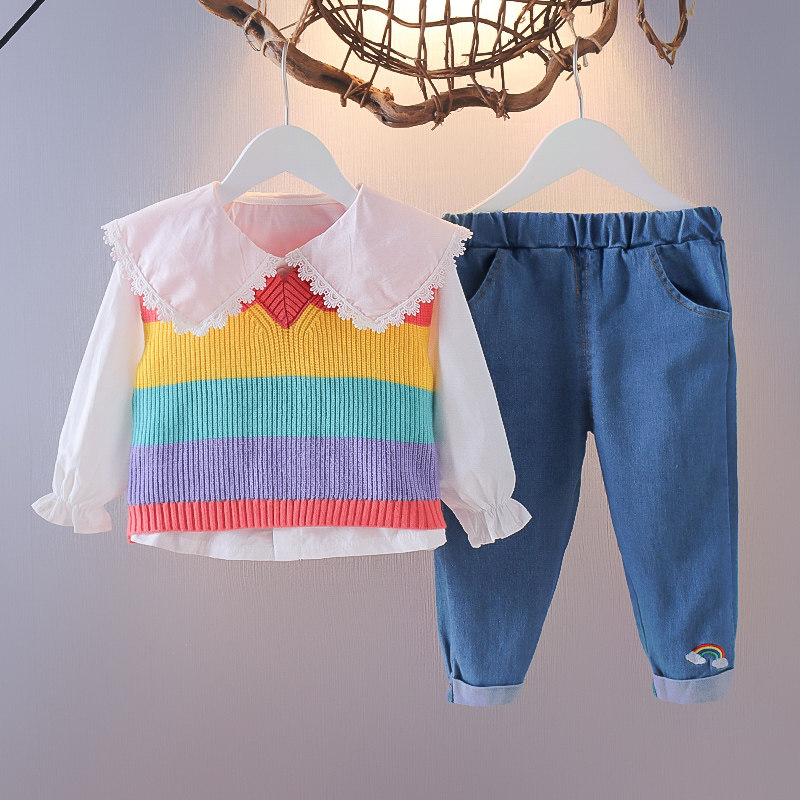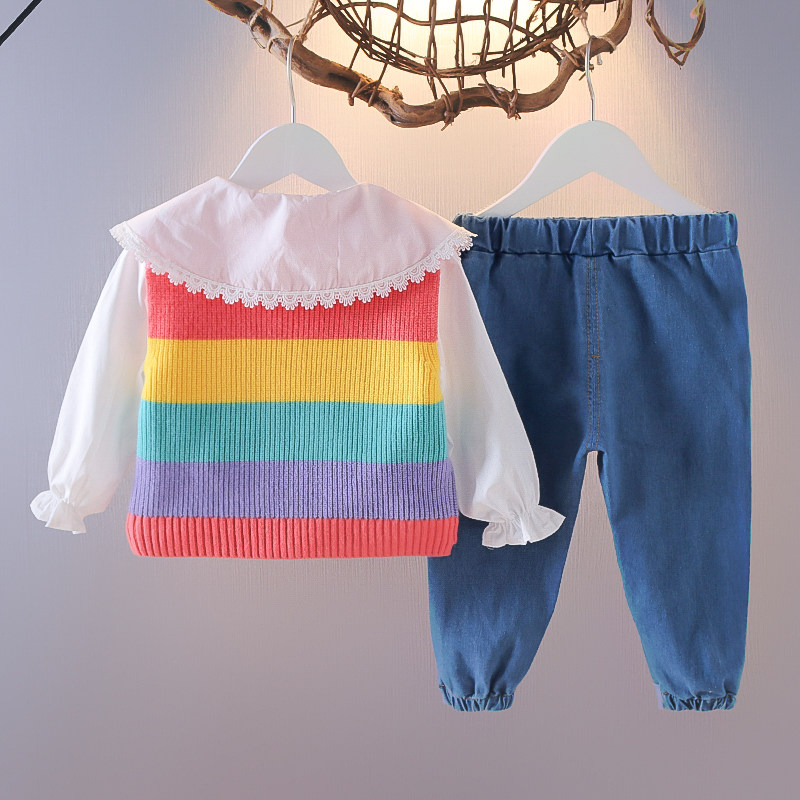 Children's clothing 2022 autumn woolen vest three-piece suit 1-3 years old baby girl foreign style autumn clothing 6-9 months baby clothes