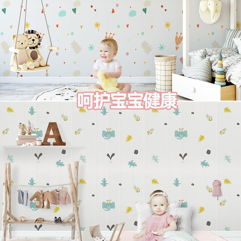 Foam wallpaper self-adhesive 3D three-dimensional wall stickers waterproof moisture-proof stickers Cartoon children's room wallpaper anti-collision thickened soft bag