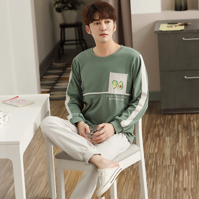 Pajamas men's spring and autumn cotton long-sleeved trousers large size cotton can be worn outside men's pullover homewear suit autumn and winter