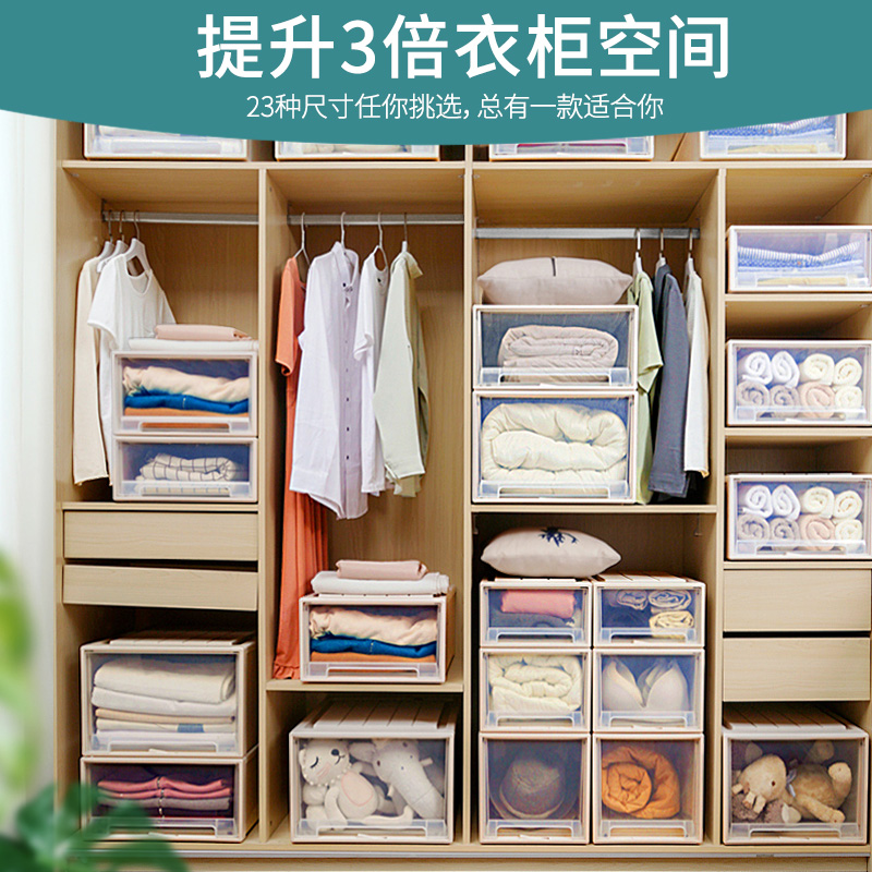 Storage box Drawer plastic transparent household storage cabinet Clothing toy finishing box Wardrobe underwear storage box