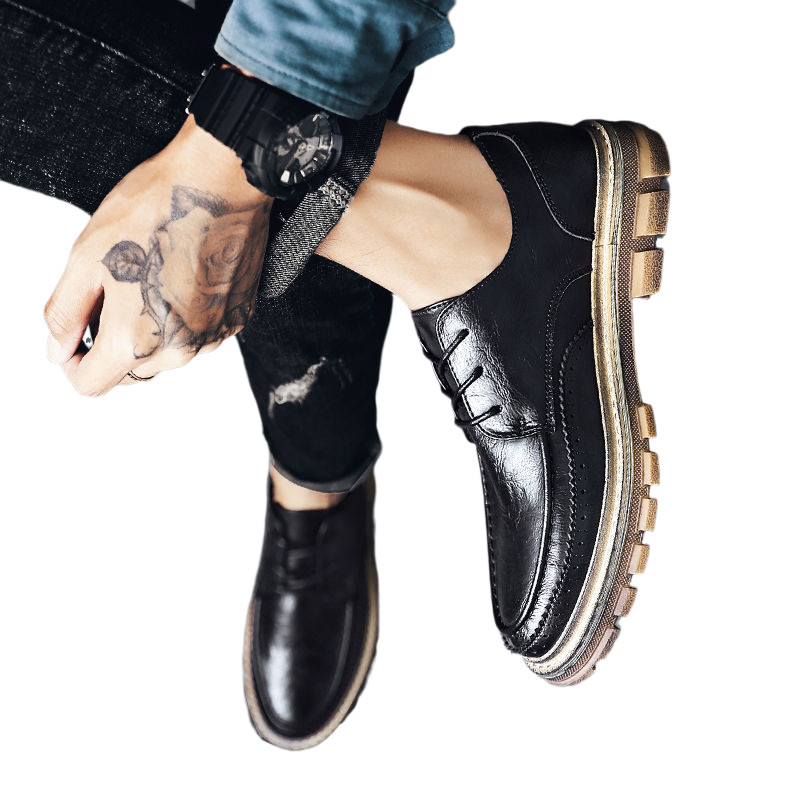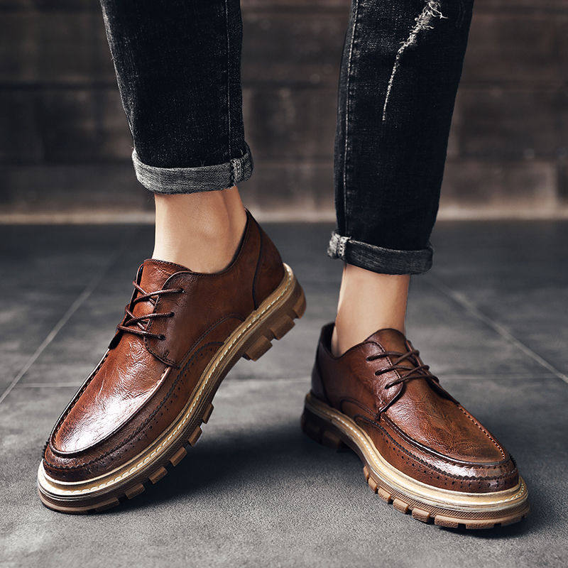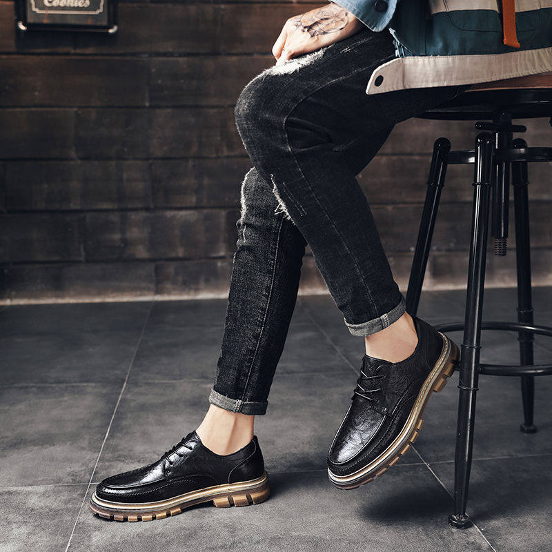 Han Edition black high-tube leather men English leather shoes business leisure dress personality leather shoes in retro