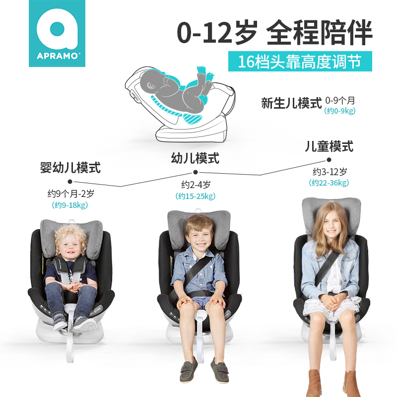 Apramo child safety seat car with 0-4-12 years old baby baby seat 360 degree rotation classic version