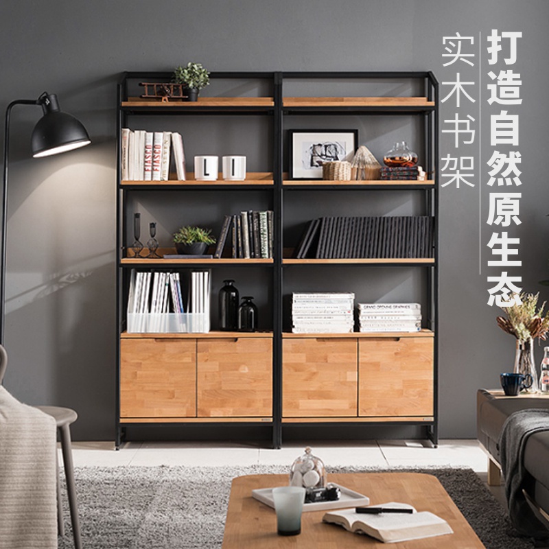 Loft solid wood bookshelf bookcase simple modern living room landing storage with Nordic iron artifacts