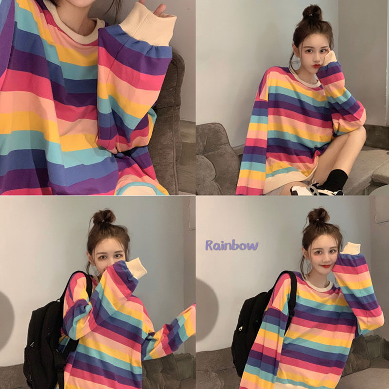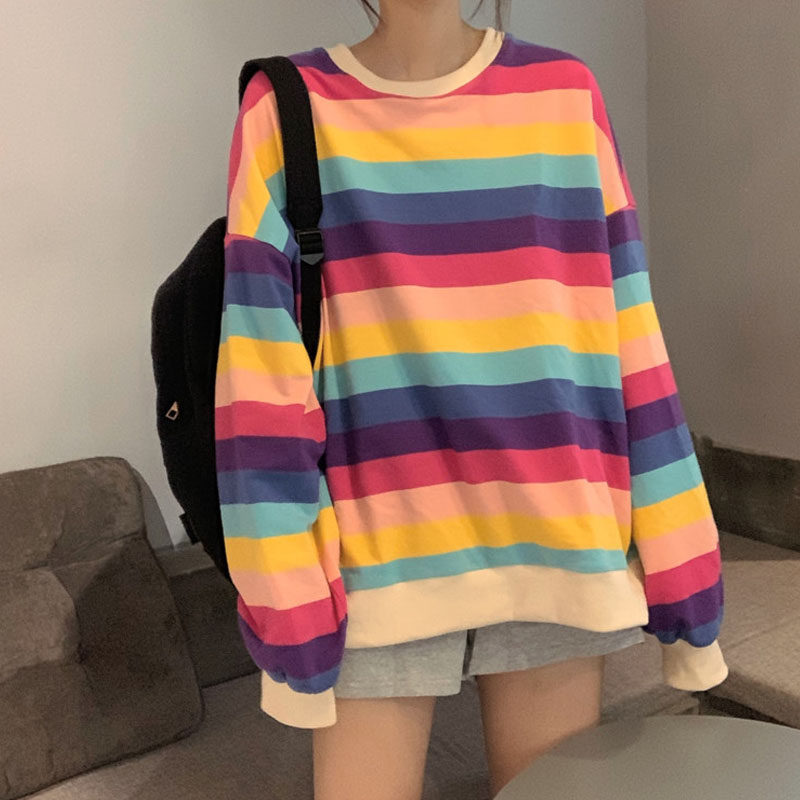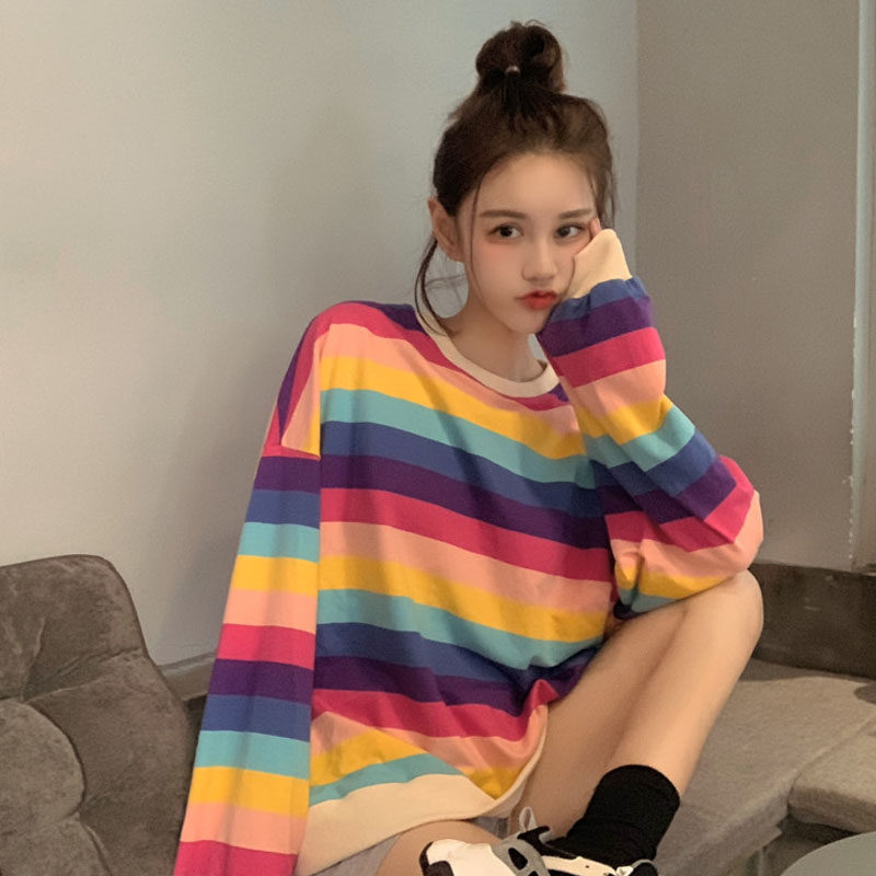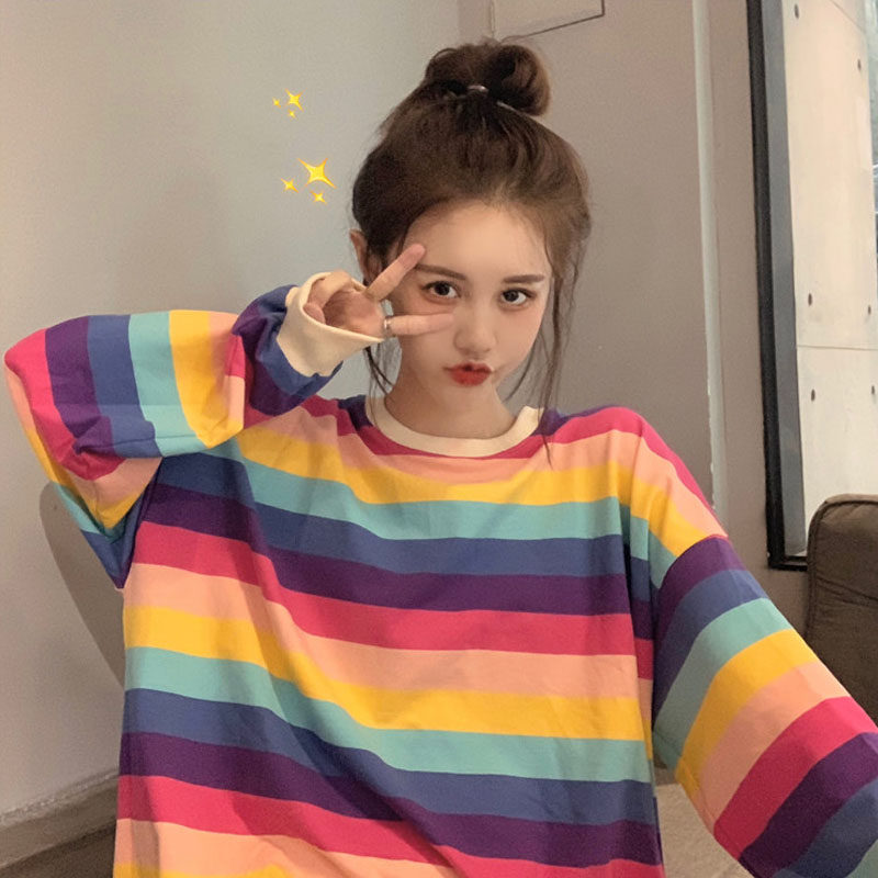ins superfire 100 hitch colored striped round collar women's dress 2020 Fall new loose long sleeves thin blouses