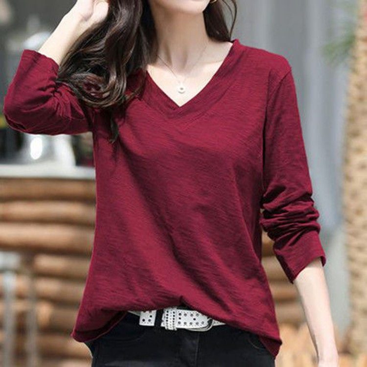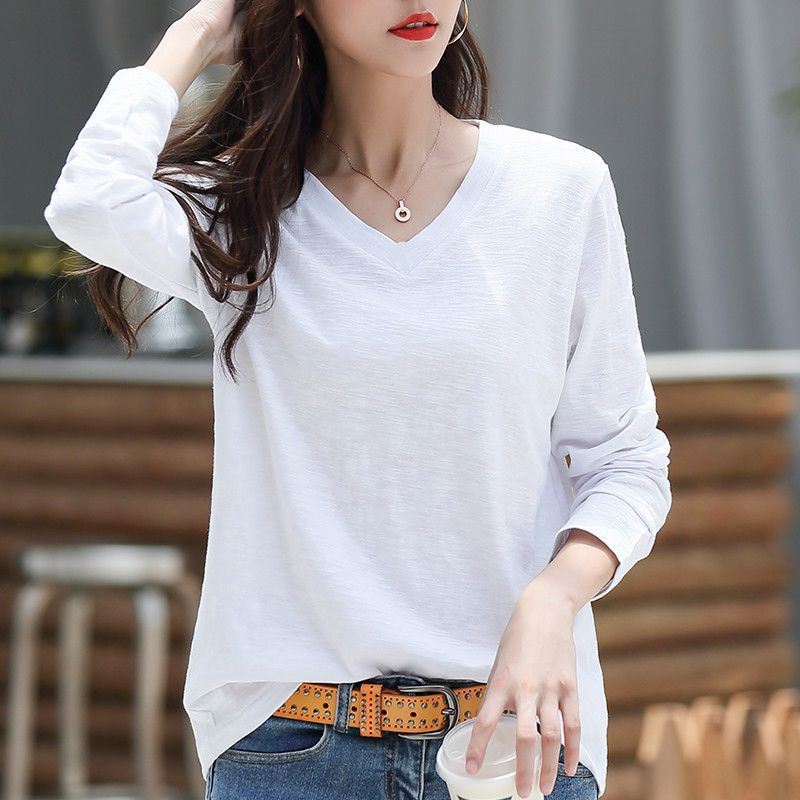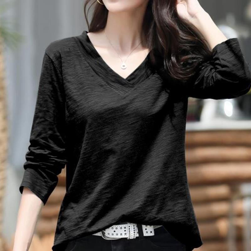 European station Ocnltiy cotton loose long sleeve t shirt clothing new spring and autumn pure color blouse v-collar coat
