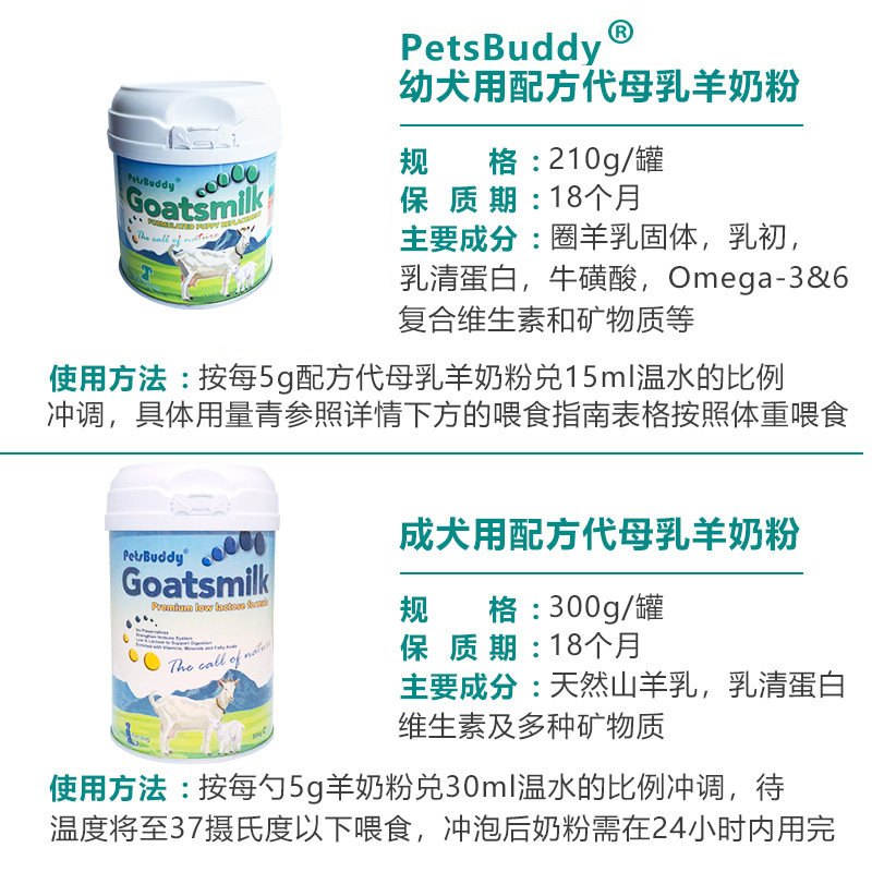 (full dog period) goat milk powder 300g (more than 8 weeks (freshmen puppies) goat milk powder 210g (full dog period) goat milk powder 300g (deflated tank)