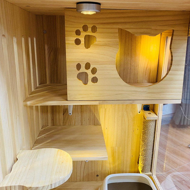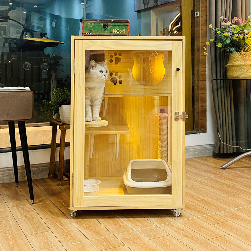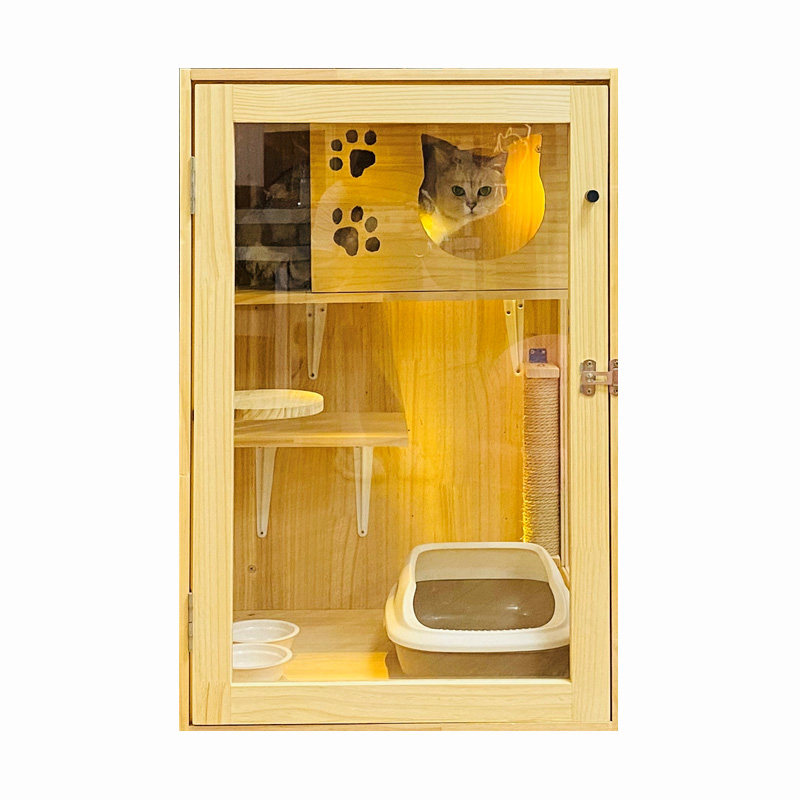 Cat villa Solid wood side transparent luxury cat house Cat breeding cage Cat display cabinet Cat bed Cat pet cabinet Cat room