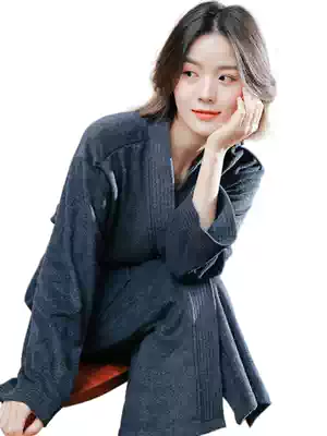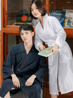 Towel bathrobe women's spring and autumn couples long version pajamas spring and summer yukata cotton absorbent quick-drying men's nightgown