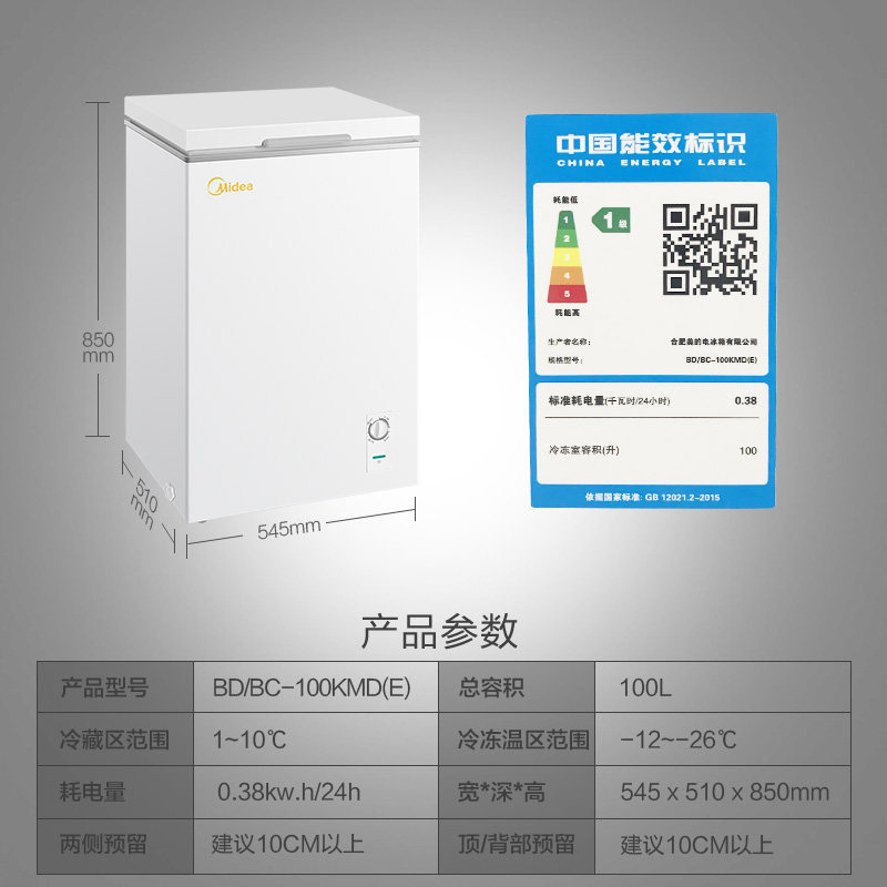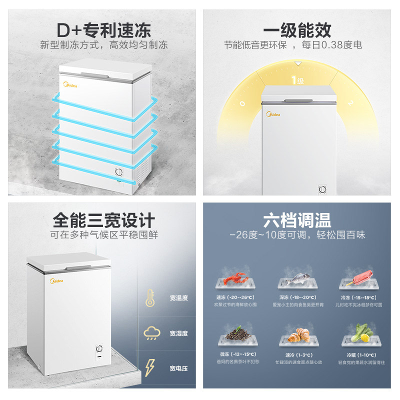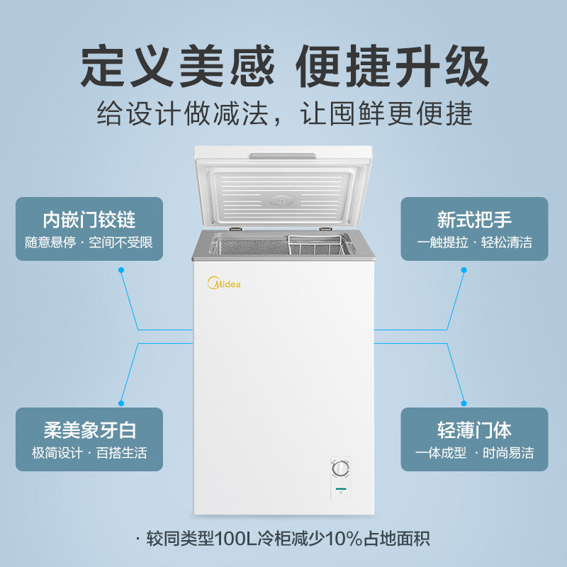 Midea 100 liters small freezer Small horizontal commercial freezer Household energy-saving fresh and frozen dual-use mini refrigerator