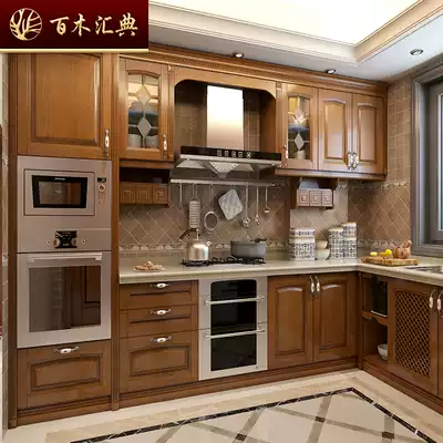 American solid wood whole house custom cabinet kitchen whole custom red oak log Chinese European style decoration kitchen whole Cabinet