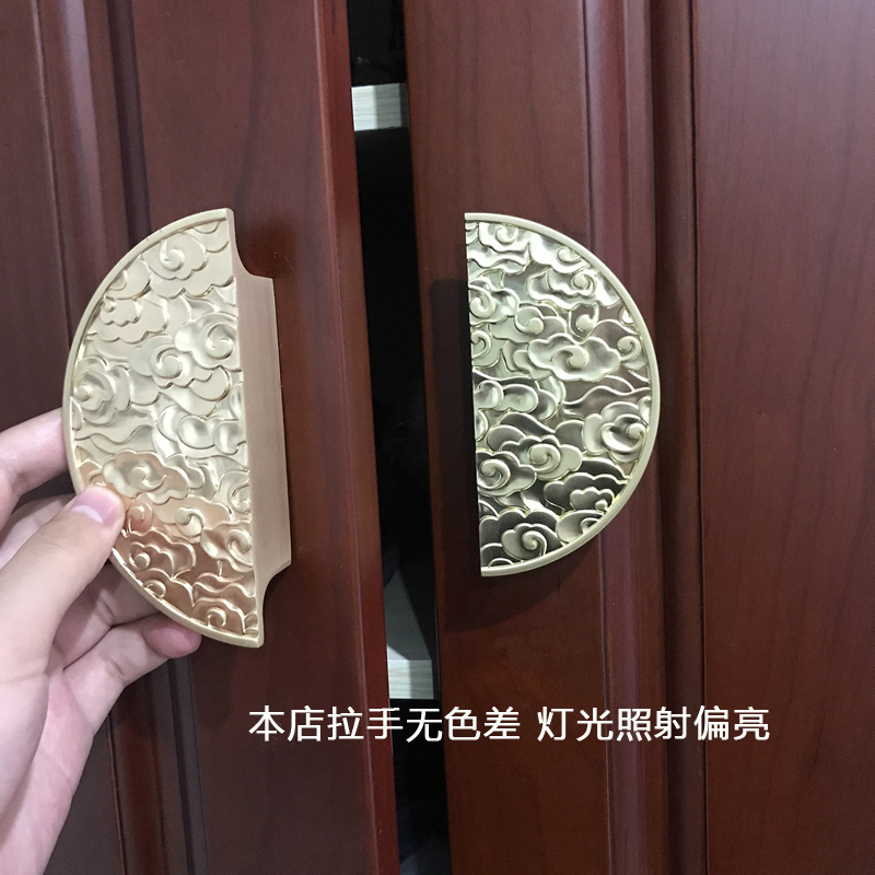 New Chinese cabinet door imitation antique solid wood integral cabinet disc handle drawer wardrobe with light lavish golden handle to the furniture