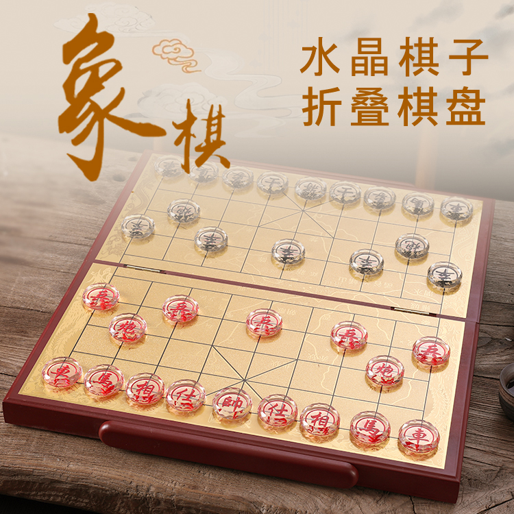 Chinese Chess Crystal Suit Solid Wood Folding Chessboard Adult Great University Students High-end Non-Magnetic Portable