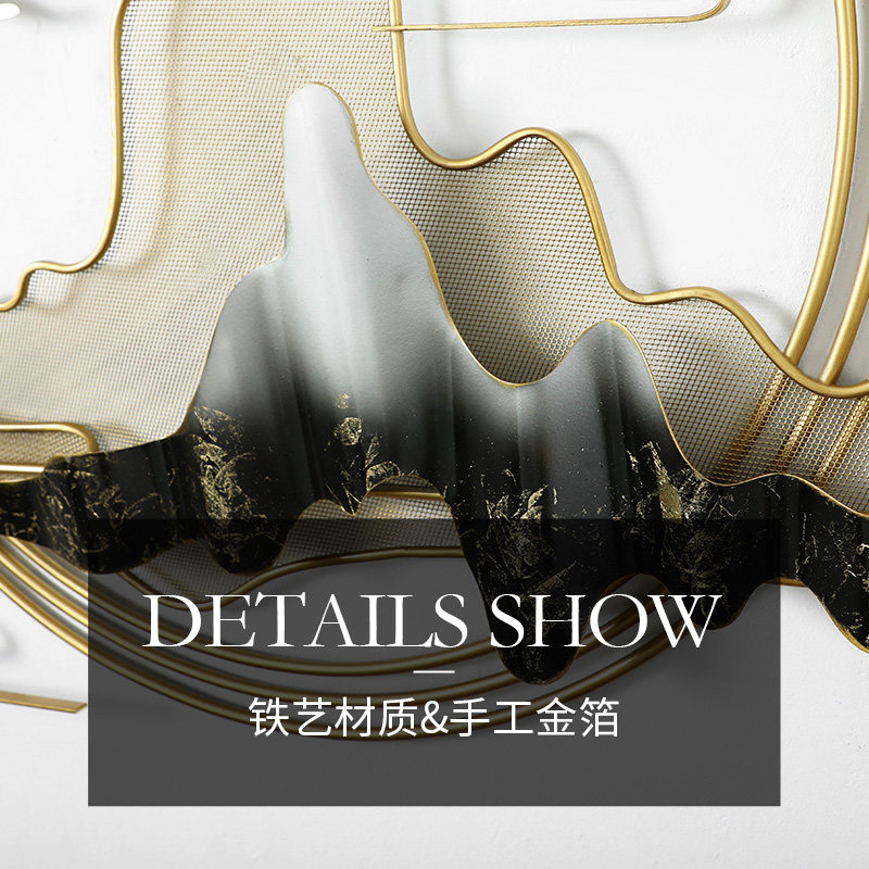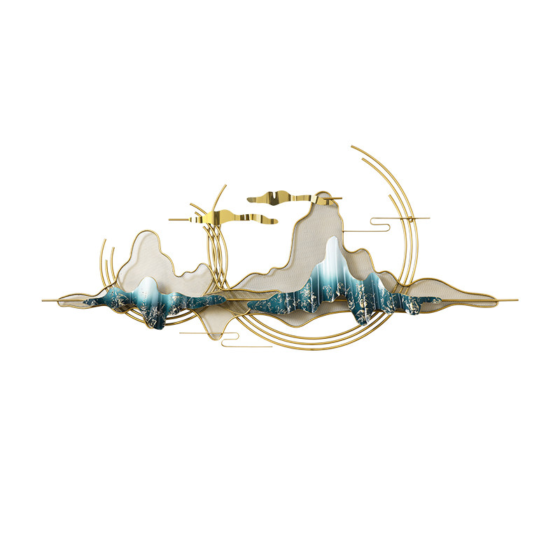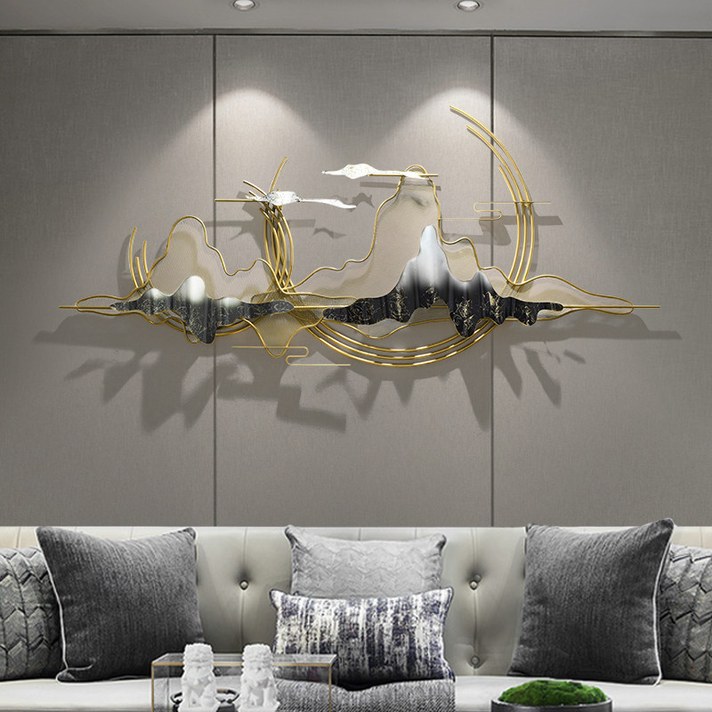 Chinese style Zen landscape Wrought iron wall decoration pendant Living room background wall decoration Creative light luxury wall decoration pendant