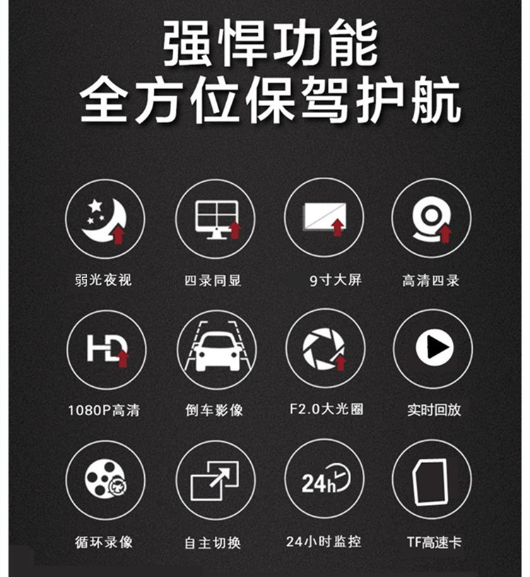 24V9 inch shading high-definition two 4-way wagon recorder wagon Large truck 1080P reversing surveillance lens night vision