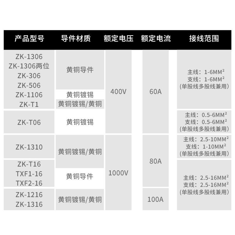 ZK-1106(6 square) 1 ZK-1116(16 square) 1 ZK-1116 tin plating(16 square) 1 ZK-1306