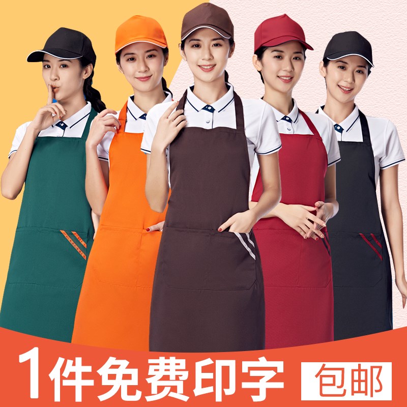 Apron custom work clothes printed logo hot pot shop milk tea shop apron hat set three-piece flower shop supermarket female