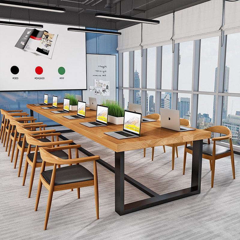 Iron Art Solid Wood Meeting Table Loft Industrial Wind Office Computer Negotiating Table And Chairs Combination Brief large strip table