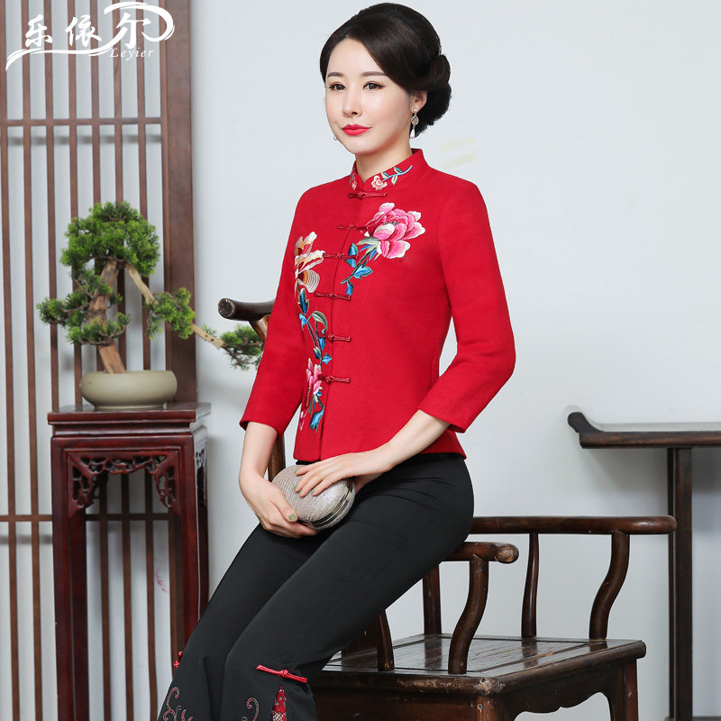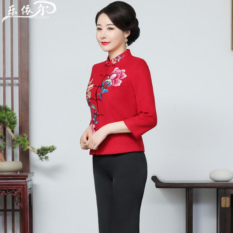 Autumn and winter women's tang dress up top modified fashion embroidery cheongsam Chinese mother dress wedding dress