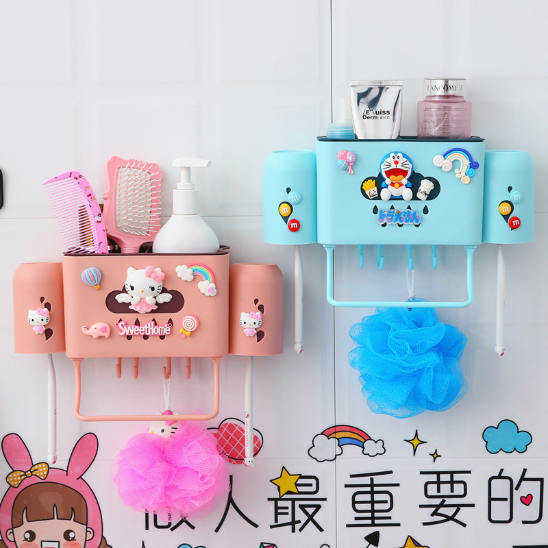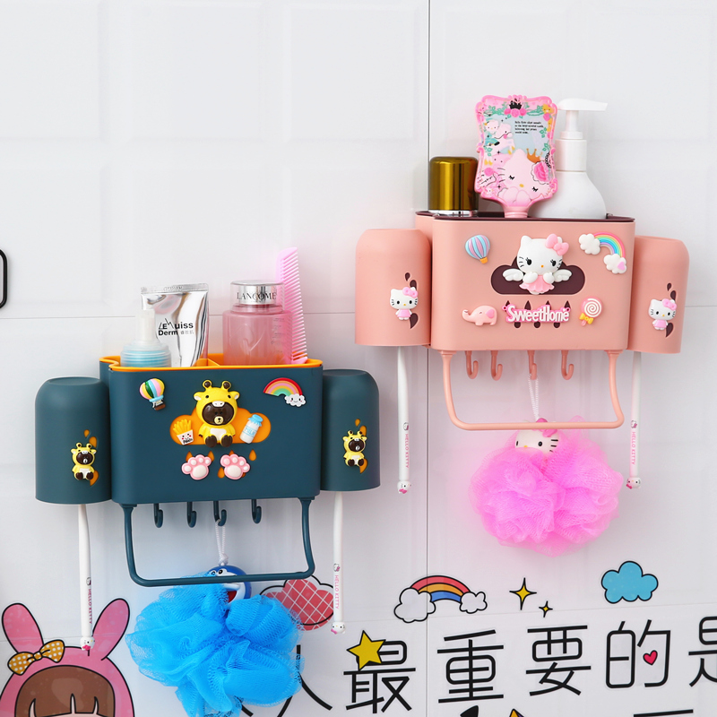 Kitchen Shelve Multifunction Home Children Cute Dressing Room Toothbrush Holder Gargle Cup Suit Free of perforated wall-mounted