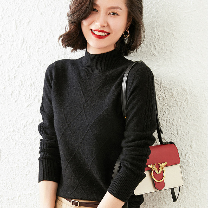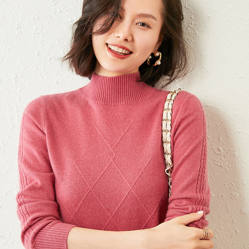 Semi-turtleneck cashmere sweater women's 2020 autumn and winter new solid color pullover loose stripe knitted base sweater cashmere coat